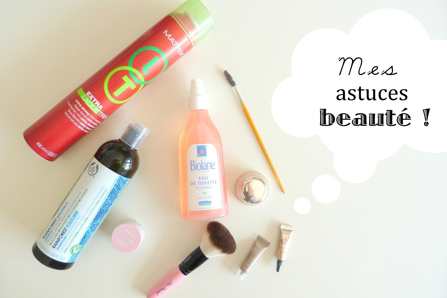 Je vous en avais déjà parlé dans cet article : la laque, je m’en sers parfois pour fixer un chignon un peu bancal, mais également pour fixer mes sourcils ! J’en vaporise une infime quantité sur un goupillon, que je viens ensuite utiliser pour brosser mes sourcils. La tenue est aussi bonne (voire meilleure) qu’avec un gel à sourcils classique !