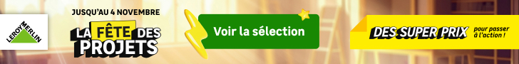Offre valable 15 octobre au 4 novembre 2025 inclus, en magasins Leroy merlin et sur le site leroymerlin.fr (hors marketplace), sur une sélection de produits. Offre valable dans la limite des stocks disponibles.