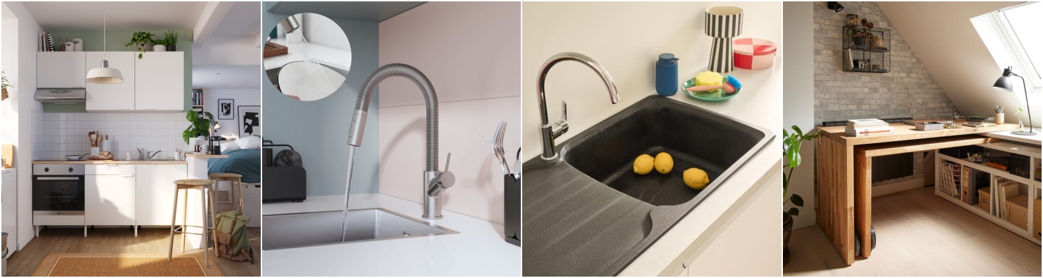 Allier fonctionnalité et esthétique, c’est le défi des espaces cuisine et salle de bain ! Si votre budget est serré, pensez à de petits détails (vasque, robinetterie, plan de travail moderne) qui peuvent radicalement modifier l’apparence d’une pièce. Pour les budgets plus confortables, je vous invite à découvrir les modules cuisine, moderne et ultra fonctionnels, qui peuvent vous permettre de rénover cette pièce clé de la maison à moindre coût !