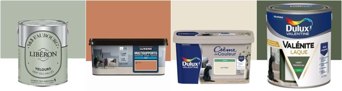 Peinture velours Vert des Halles / Peinture Cotta 4 / Peinture lin clair / Peinture satin Vert Tropical