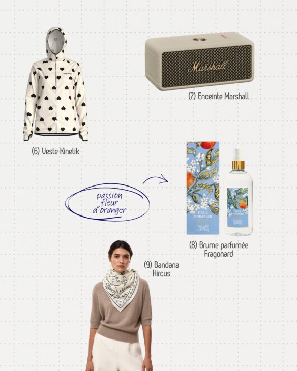 - 8- Brume parfumée à la fleur d’oranger Fragonard : ma maison de parfumerie préférée a récemment sorti cette brume parfumée, assortie à l’eau de toilette de la même marque… que je porte depuis mes 18 ans !