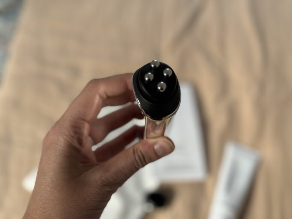 J’ai commencé à me servir de mon appareil de RadioFréquence cet été 2025, avec 2 utilisations par semaine environ. Je trouve la sensation de chaleur très agréable (et jamais douloureuse) : guidés par les diodes lumineuses, il est aisé de comprendre comment s’en servir, et quand changer de zone. Je pense avoir vu une différence sur la zone du bas du visage (c’est celle que j’ai ciblée lors des utilisations). Depuis quelques semaines, j’ai aussi fait un focus sur le contour d’oeil.